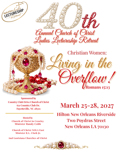 We look forward to welcoming you to the 40th Annual Church of Christ Ladies Lectureship Retreat in New Orleans, Louisiana.